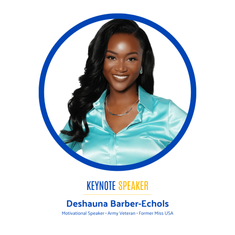 Our keynote speaker, Deshauna Barber-Echols is a nationally recognized motivational speaker, U.S. Army veteran, and former Miss USA whose journey embodies resilience, leadership, and service. From serving as an Army officer to representing women across the nation on the Miss USA stage, Deshauna brings a powerful voice to conversations around purpose, perseverance, and the impact women have when they lead with conviction.